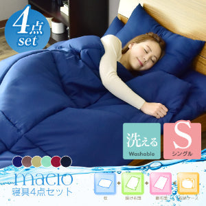 4点セット内容:ポリ敷布団、ポリ枕、ポリ掛け布団、収納袋