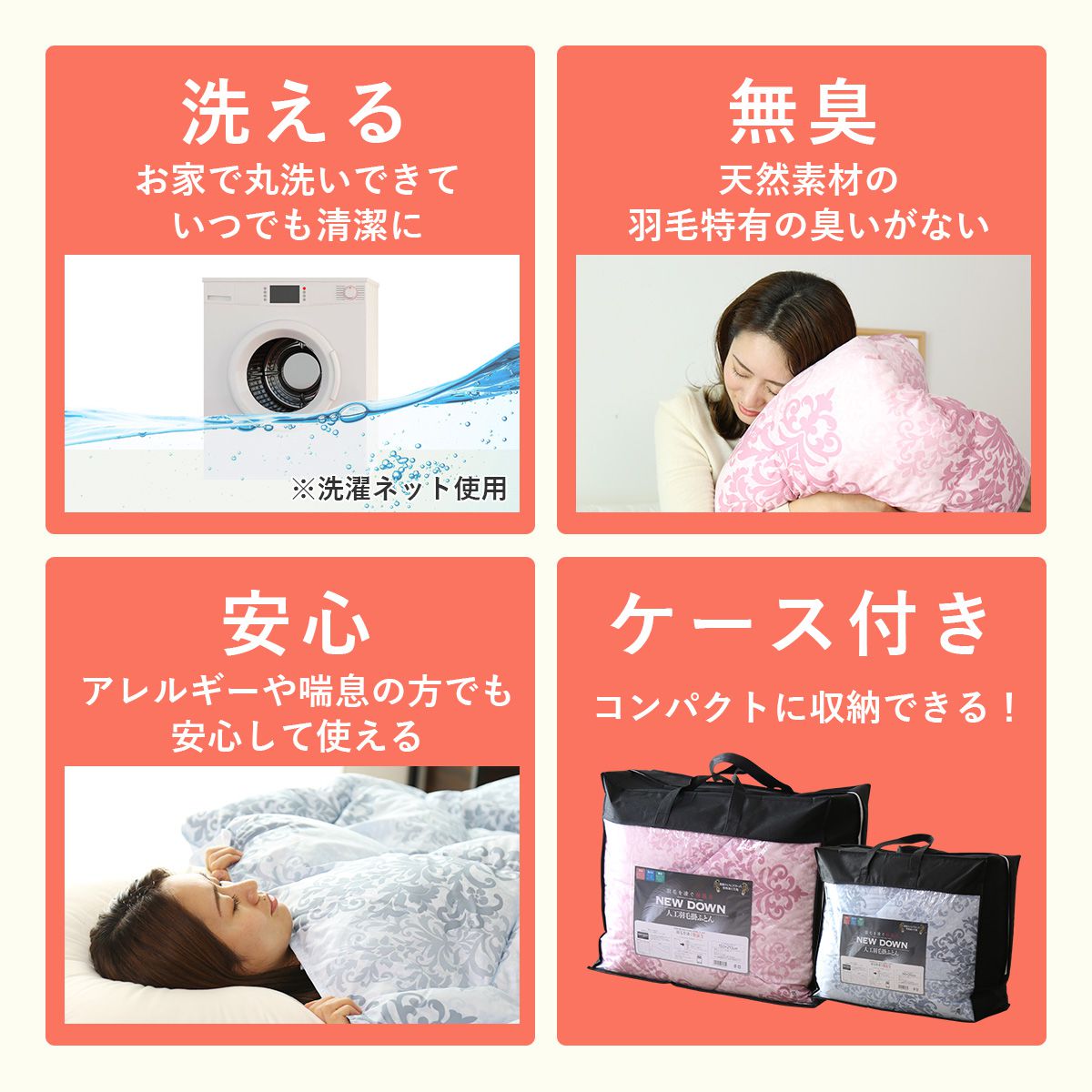 人工羽毛掛布団 掛け布団 シングル シングルロング ポリエステル100% ニューダウン 寝具 幅150 洗える ケース付き ピーチスキン加工