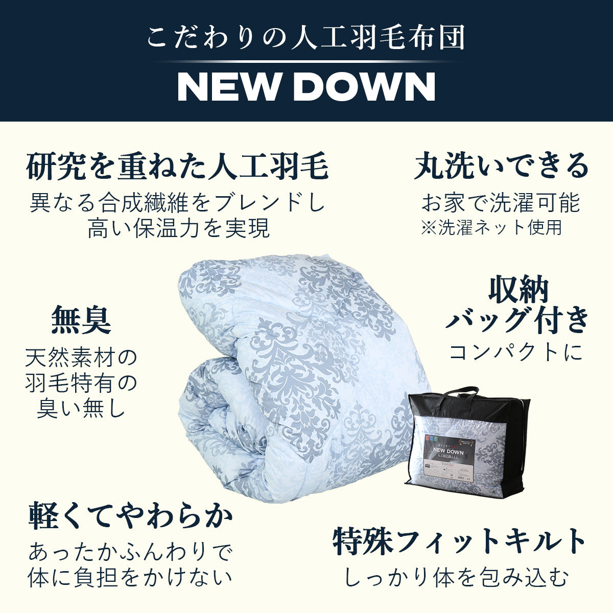 ■商品名:ニューダウン人工羽毛掛布団DL(寝具)【newdownDL】