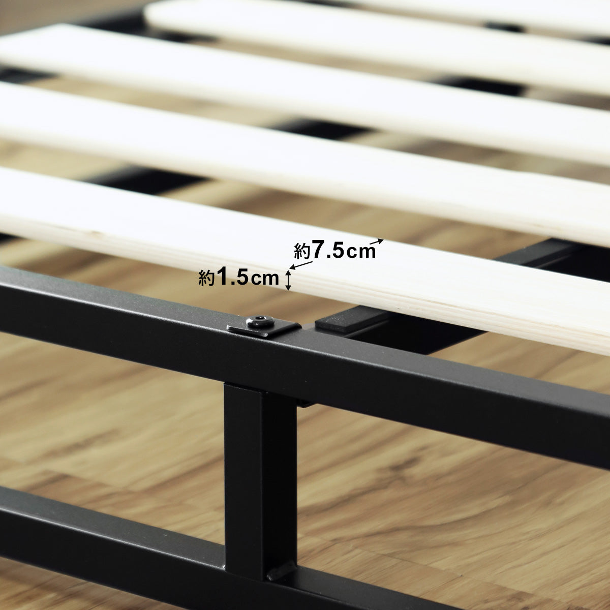 すのこ板の厚みは約1.5cm。一般的なすのこ板よりも幅を広く厚めにカットし、広い面積でからだ全体を支えます。