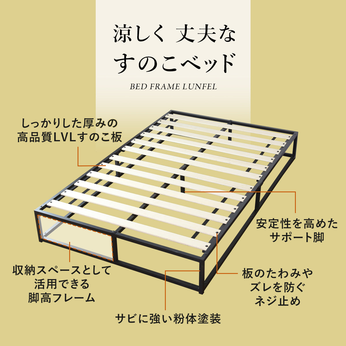 高さ19cmのベッド下には収納ボックスや衣装ケースを置いたり、収納スペースとして有効活用が出来ます。