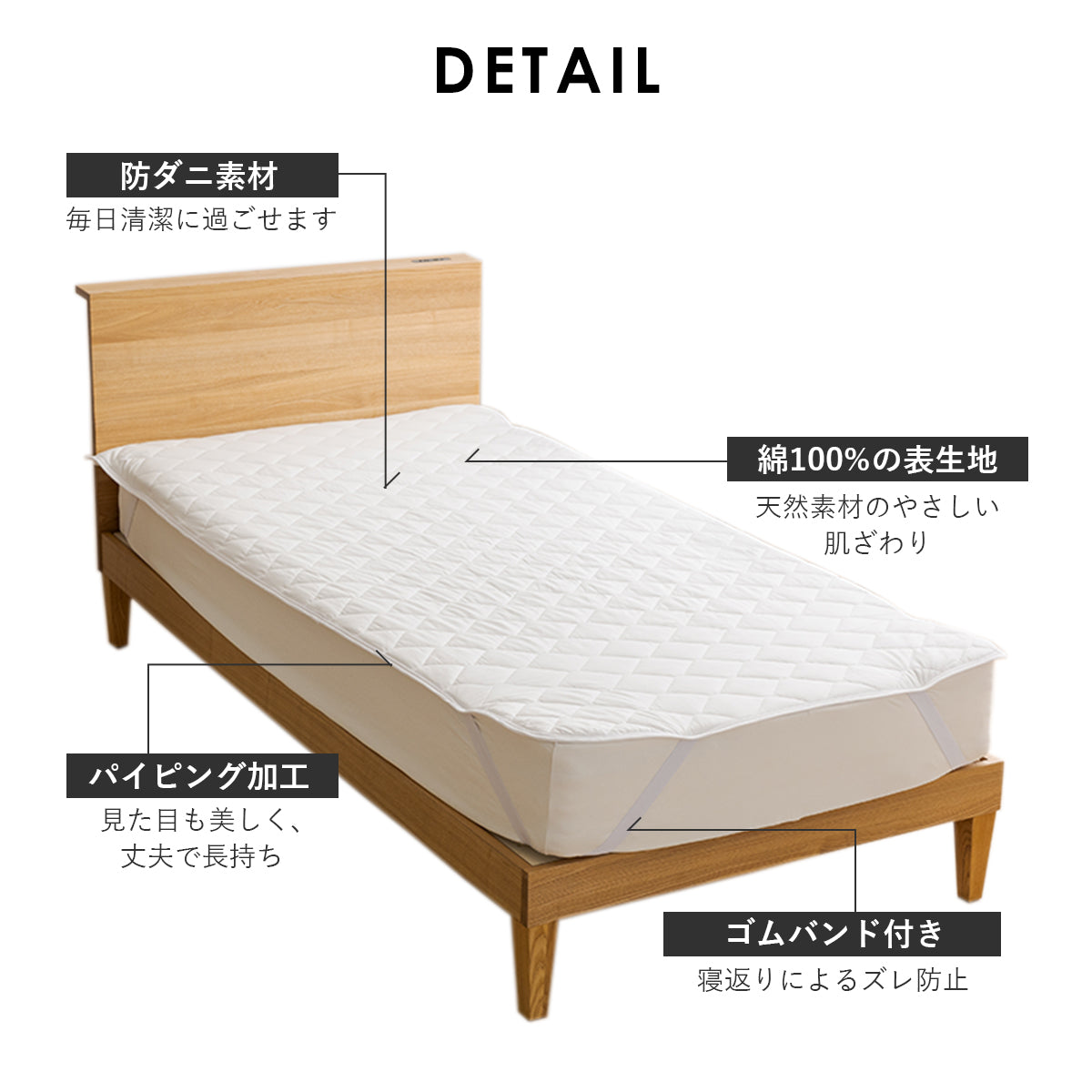 こちらの敷パッドは防ダニ素材なので、アレルギーに敏感な方にもおすすめです。