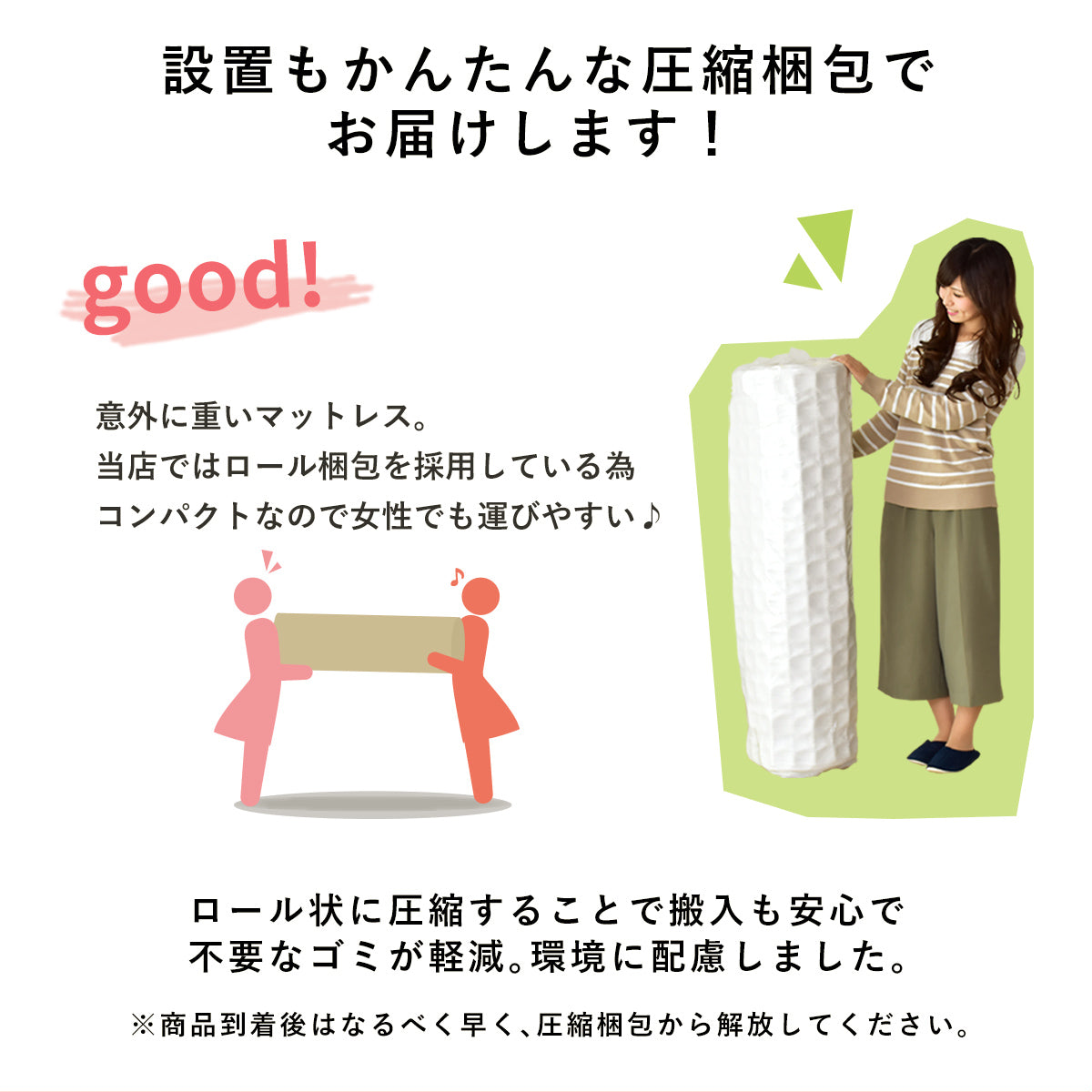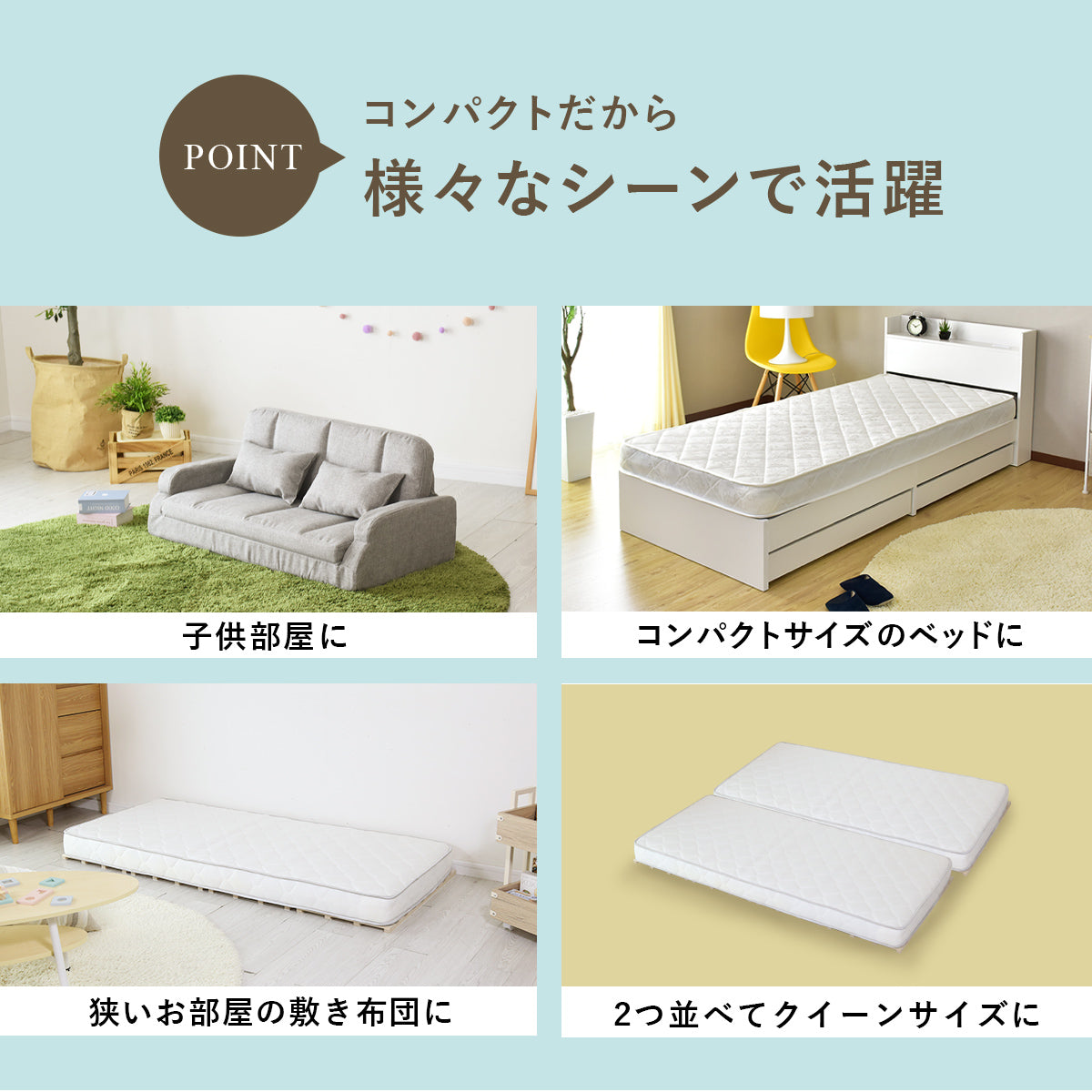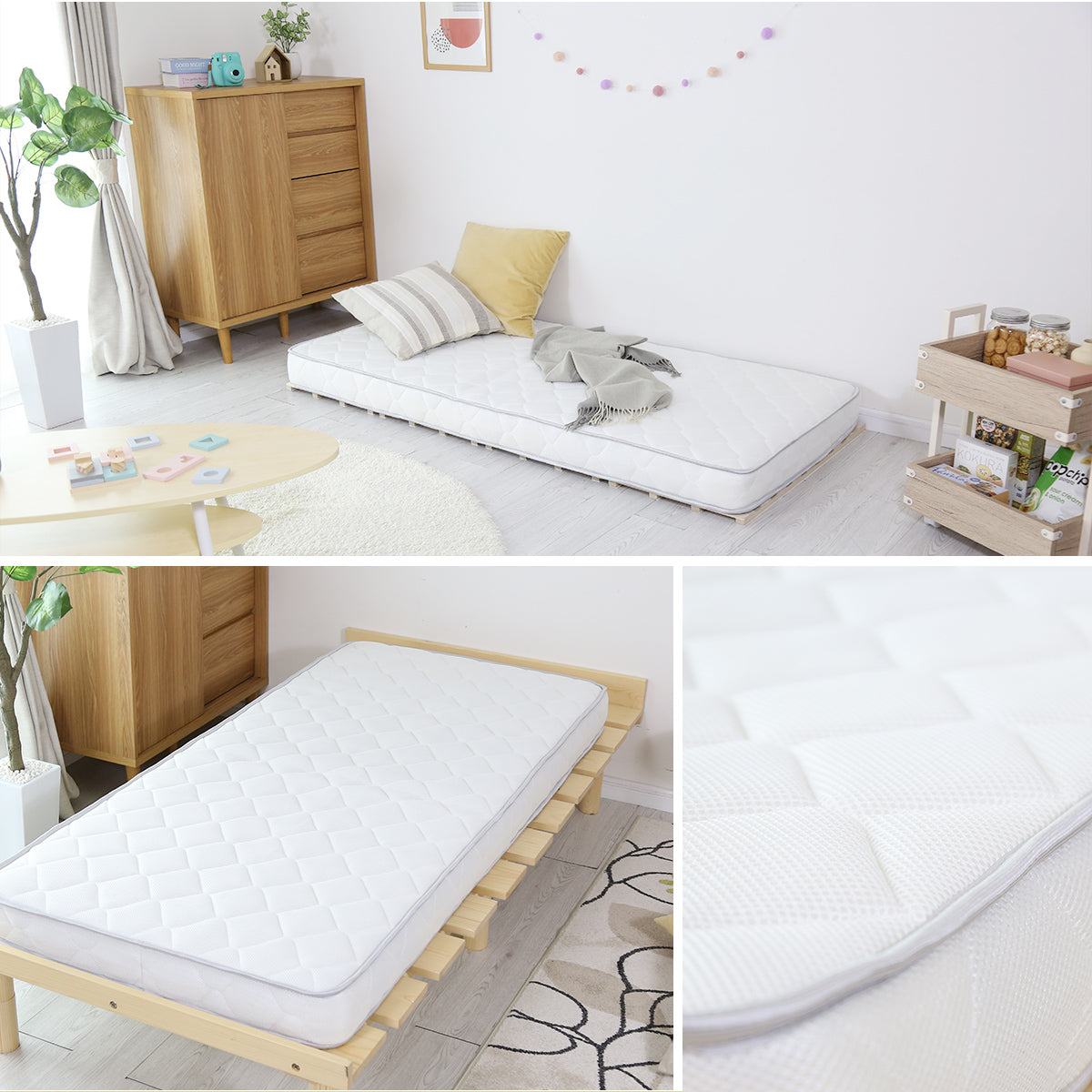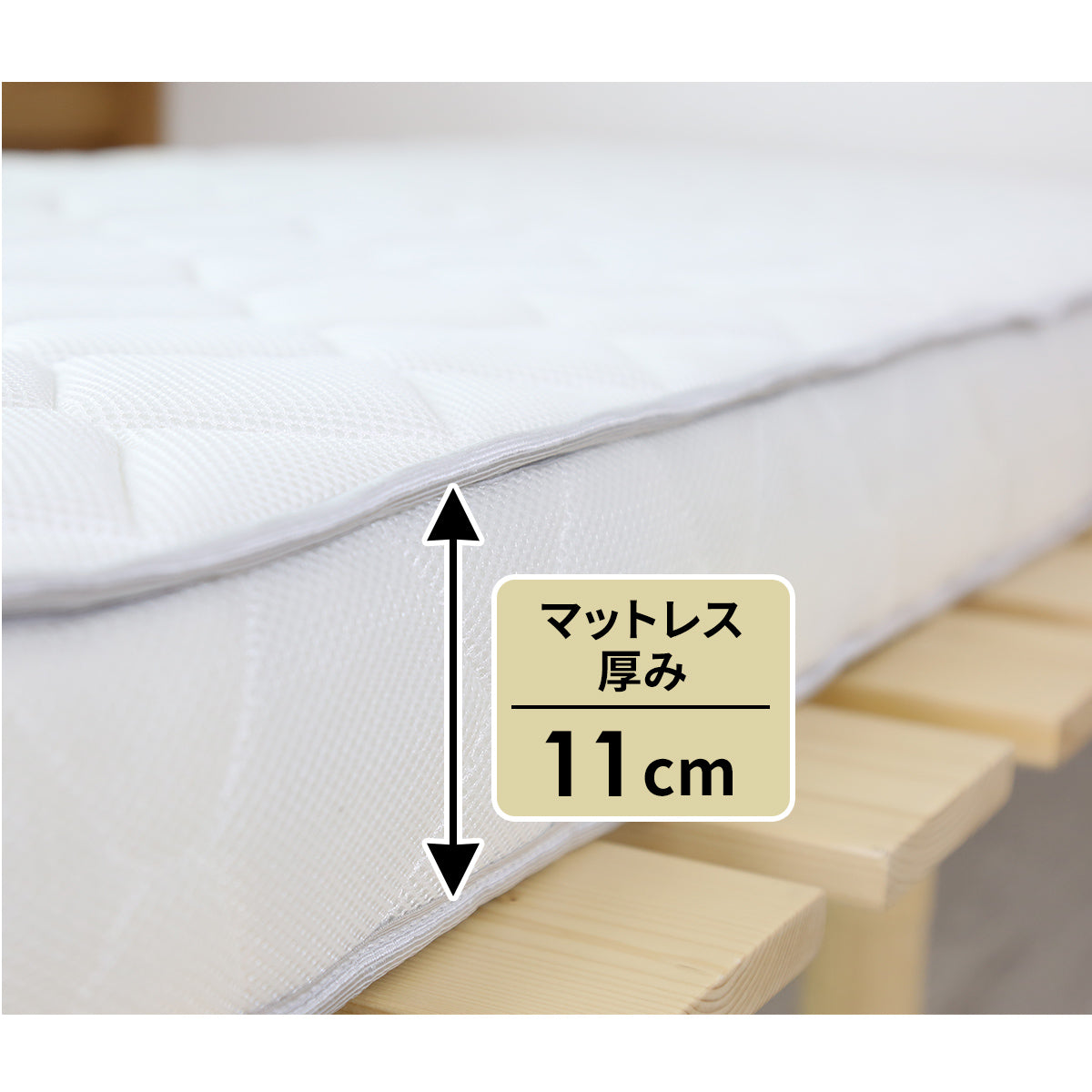 マットレスとしては薄型の厚さ11cmながら、ポケットコイルがたっぷりと詰まっているので底付き感なくほど良いクッション性を保ちます。お子さま用の2段ベッドやロフトベッドにおすすめのサイズ感です。