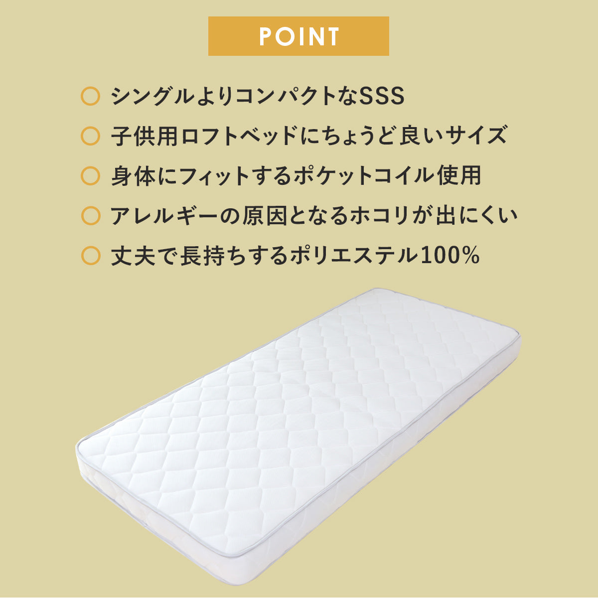 マットレス セミシングルショート 高反発 ウレタン ポケットコイル イベリスSSS