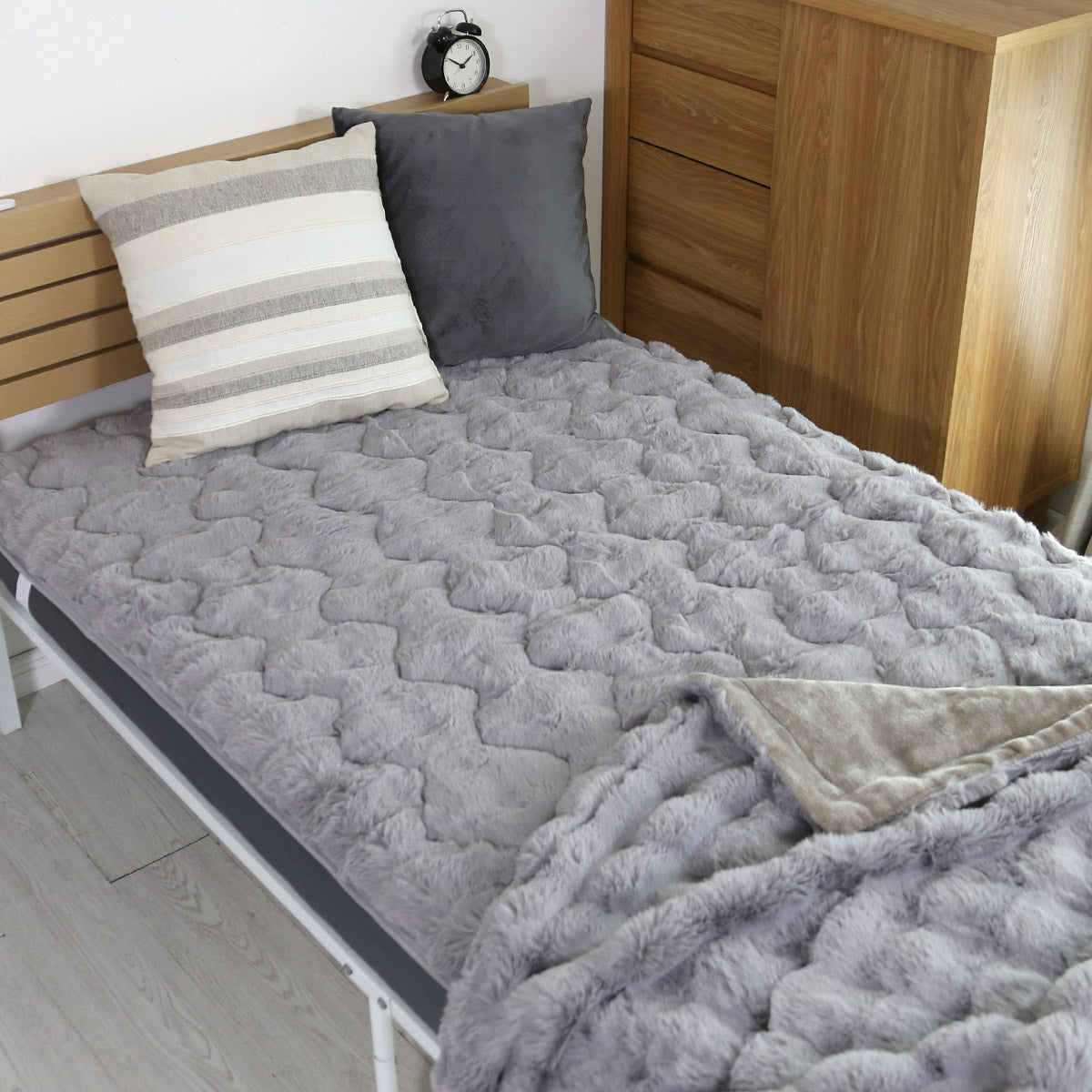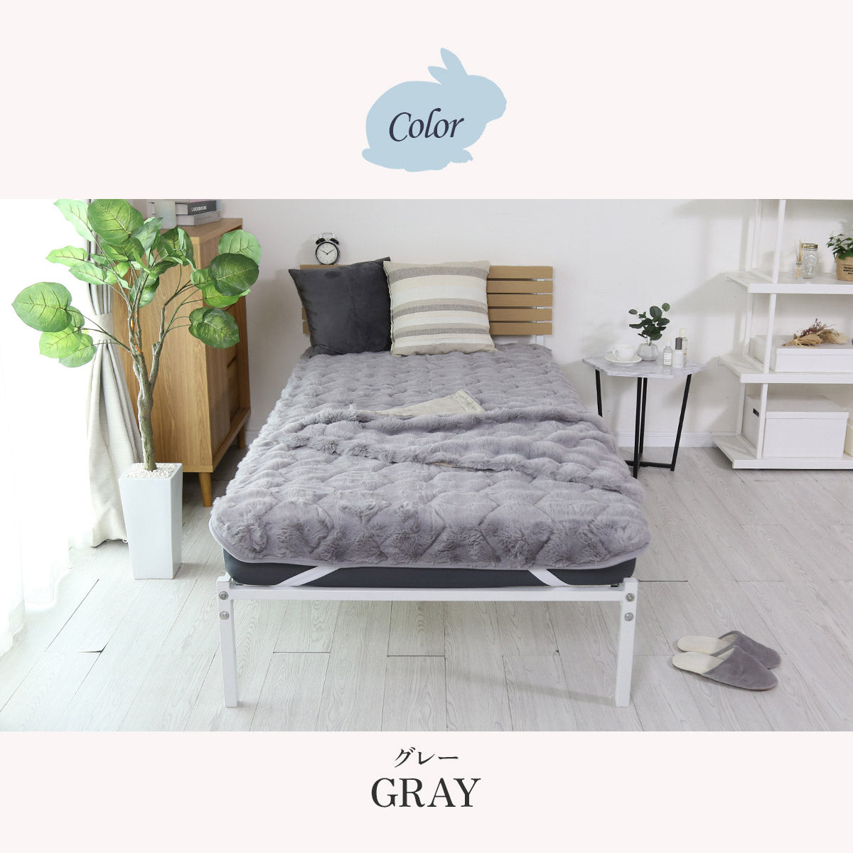 本物のラビットファーにも劣らない質感のフェイクラビットファーを使用した敷パッドです。一度触れたら必ず虜になる「しっとり」「ふわふわ」な触感は、思わず頬擦りしたくなるような贅沢な肌触り。グレーの淡い色合いと見る角度によってファーの毛並みが変わるのも魅力で、敷パッドとして使用しながら極上の癒しも提供してくれます。
