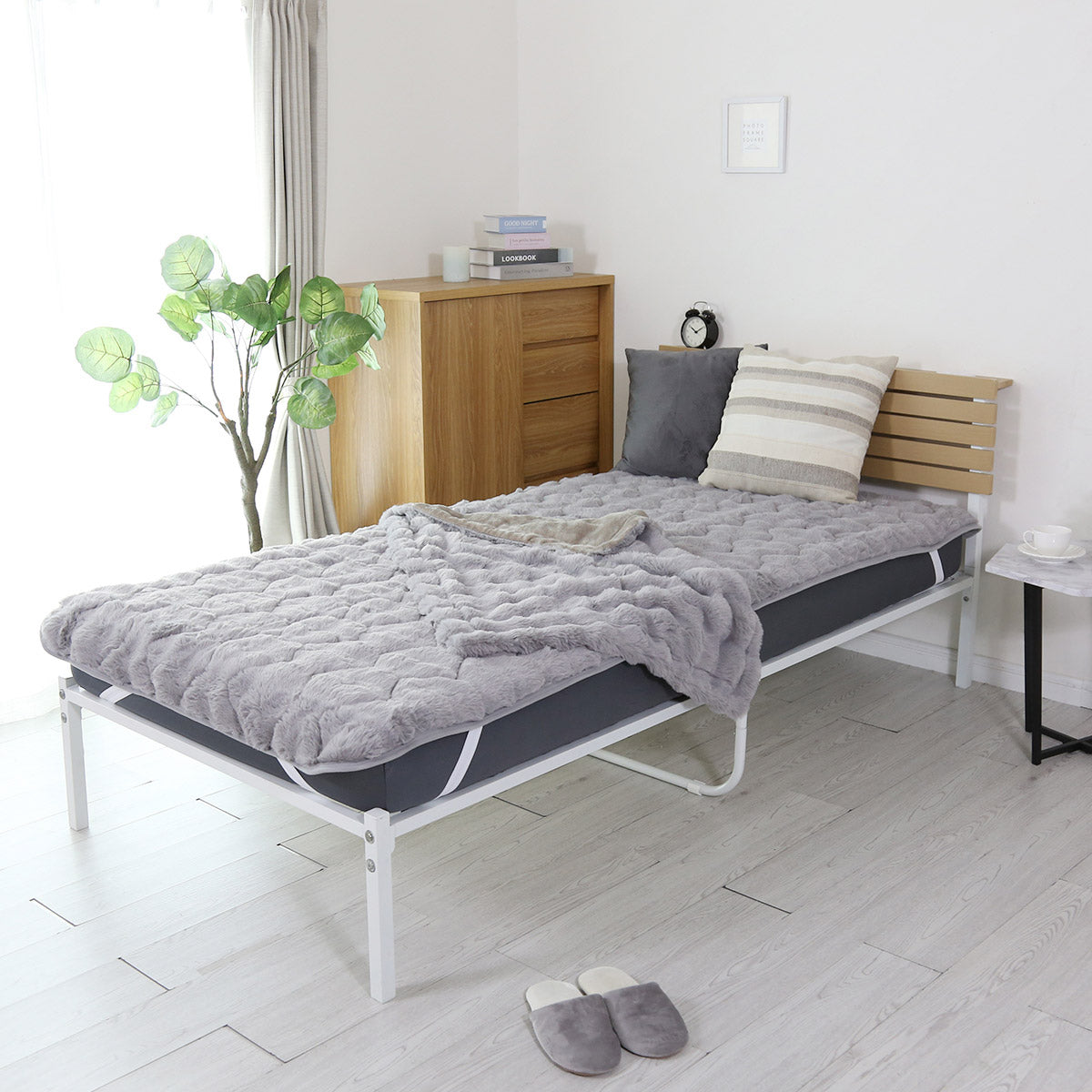 敷パットの端にはマットレスのズレ防止のためのゴムバンドが付いており、ぐるっと囲うように丁寧なパイピング加工も施されています。敷パッドをより快適にご使用いただける仕様となっています。