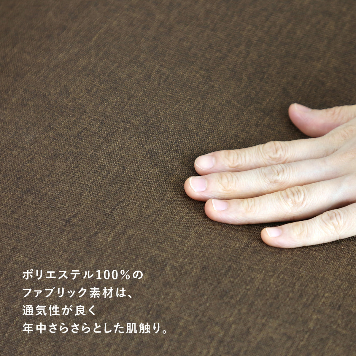 耐久性と通気性に優れたファブリック生地は、家具やインテリア製品に重宝される丈夫でメンテナンスも簡単な生地です。湿気を適度に吸収・放出するので季節を問わずサラッと快適な肌触りで使用でき、寝具に湿気がこもる心配もありません。また、お洗濯OKなのでいつでも清潔に保つことができます。衛生面でも優れており、特に小さなお子様やペットがいる家庭でも安心して使用できます。