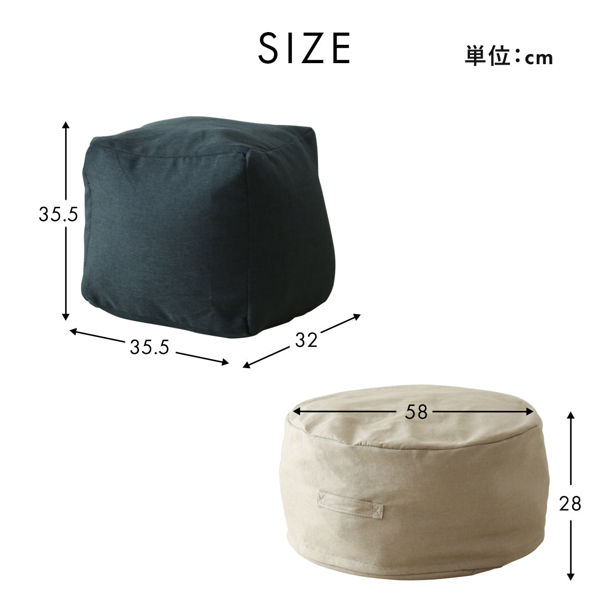 | サイズ | 【キューブ】幅35.5×奥行35.5×高さ32(cm)|【ロング】幅94×奥行32×高さ10(cm) 【ラウンド】幅58×奥行58×高さ28(cm) ※個体差により若干の差異あり |